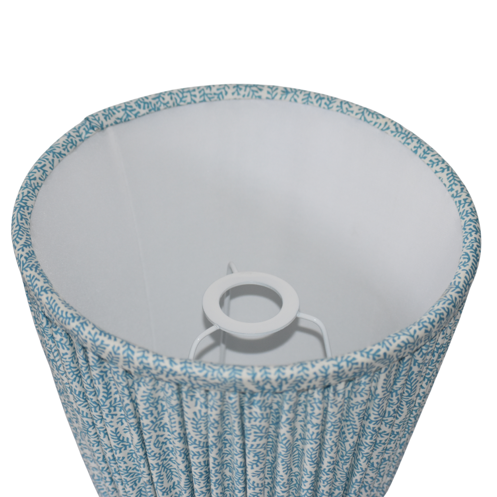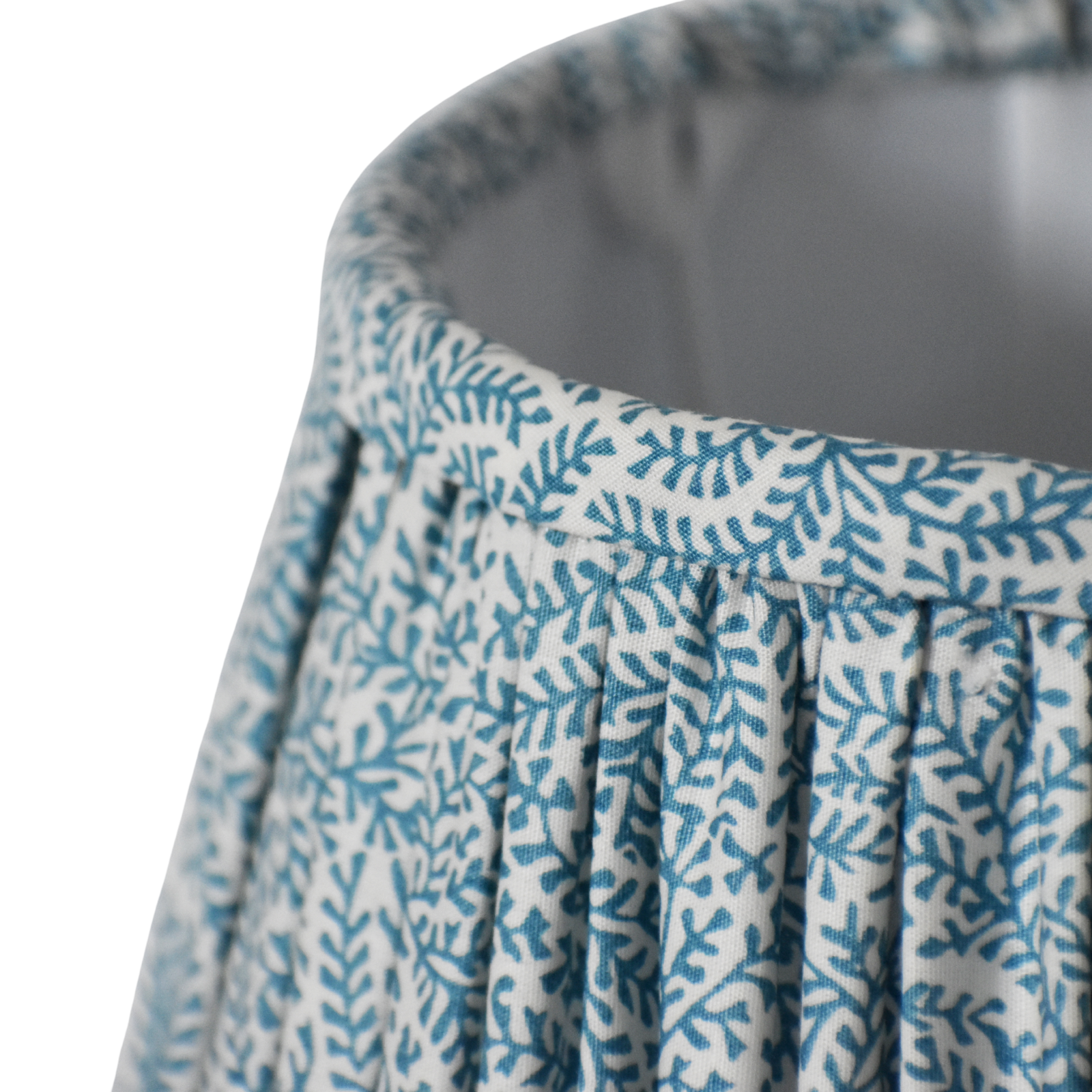 Elevate your space with this stunning round gathered shade in Coral Azure fabric by Soane....
